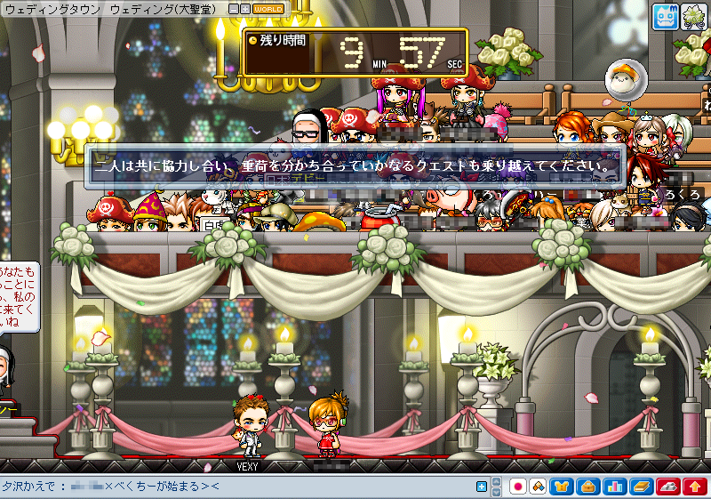 ギルドメンバーが「結婚しちゃうよ><」と言うので、先輩の私が(自キャラ2名既婚、式参加6回くらい?)いろいろ口出ししてました。