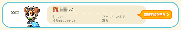 私なんかを早いとか言っちゃうと他の早い人とか廃人様方の立場がないです・3・ 楓鯖トップは今Lv140ちょいらしい。