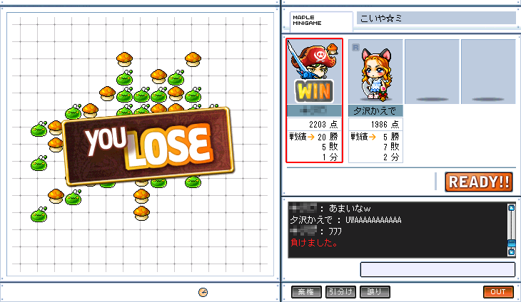 そんな経験値の事情もあるので海賊船の向こうに長くいるのですが、楽しそうに五目やってたので混ぜてもらいました。