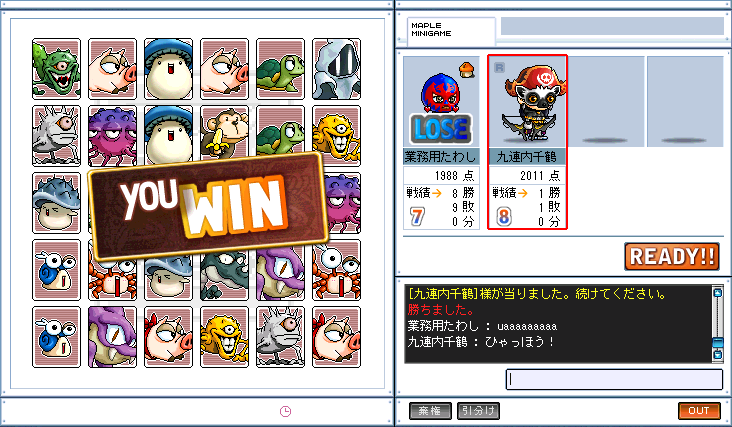 前回同様ミニゲームで遊んでたのですが、序盤からものっそ油断してくれたおかげでリベンジを果たせました^^