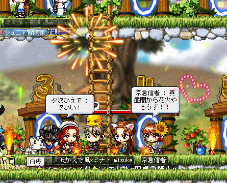 1chフリマ入り口で、一緒に花火しようぜ!ってやったらなんとかここまではできました・3・ そこそこ大きいのが打ち上がりましたし、キノコとかスライムの花火もあって面白いですネー。まだ大きくなったりするのかしら・・・。